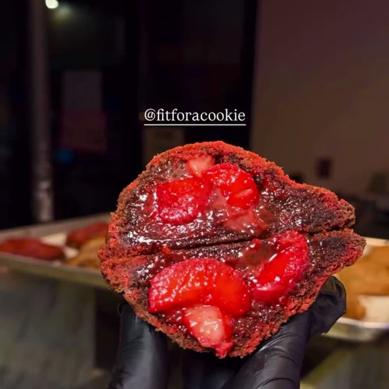 Strawberry vanilla bean cookie swirled into a BROWNIE, layered with brown sugar strawberries🍪🍓